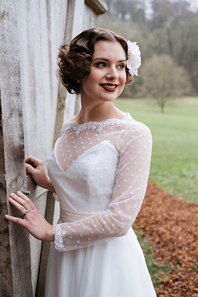 Our stunning model Rachel was amazing to keep going, despite how freezing it was – you wouldn’t even know looking at the photos! We had the lovely Paula, from Paula’s Vintage Parlour, on board to do Rachel’s hair and make-up. If planning a vintage look for your wedding, she is your lady!